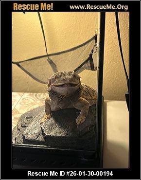 26-01-30-00194EBearded dragon (f)(female)Reptile/AmphibianEl Paso County, Falcon, COID: 26-01-30-00194
